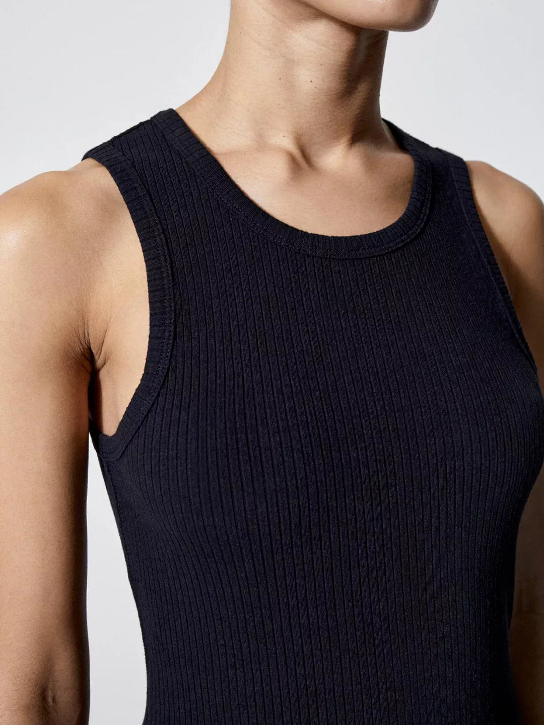 Responsibly crafted from our soft organic cotton jersey, Angelina is a slim tank refined by an elongated body, a scoop neckline, and a straight hem. An essential foundation piece offered in a lightweight and textured rib stitch.
