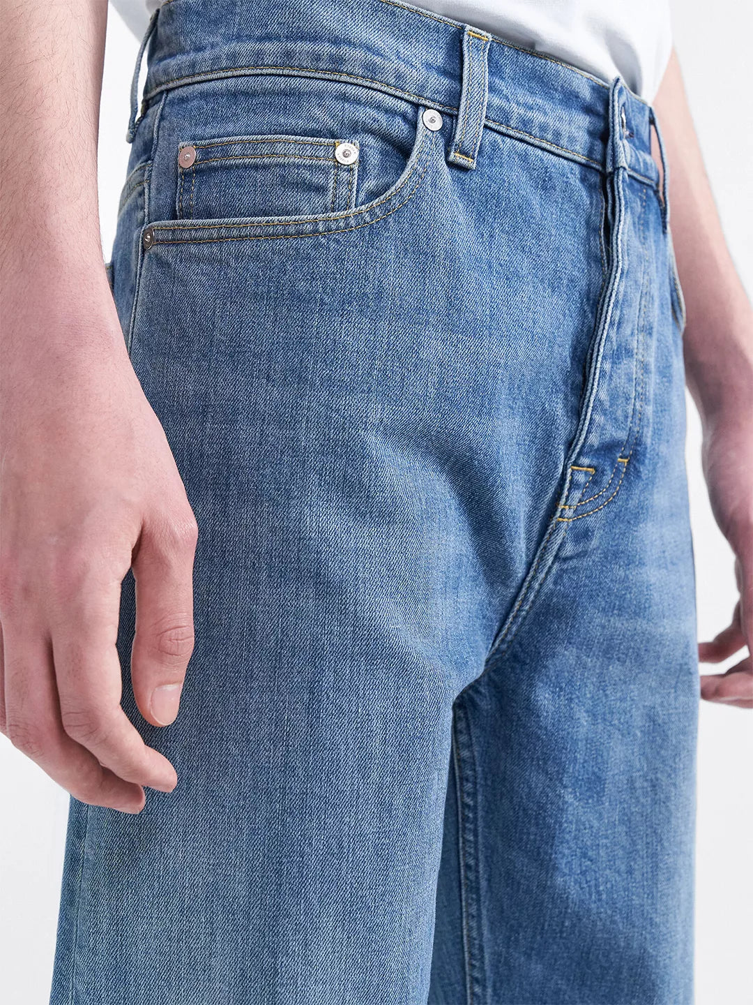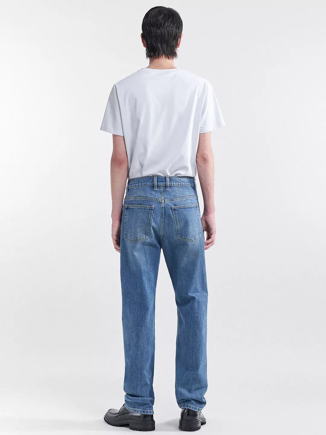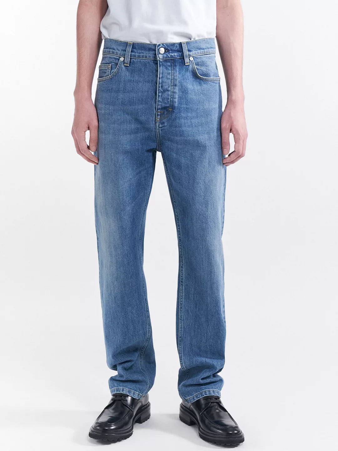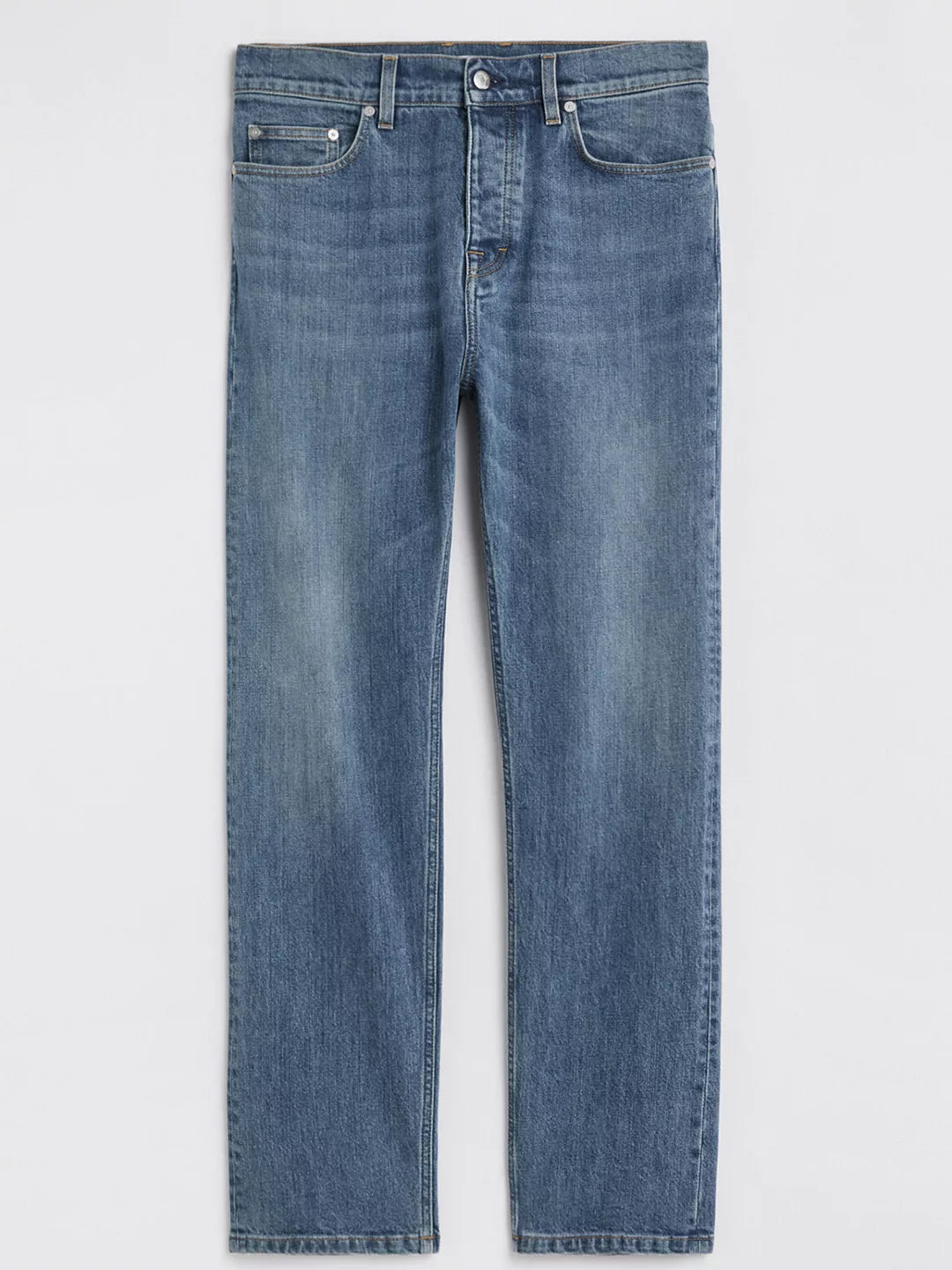 Straight-leg jean in slight-stretch organic cotton. Five-pocket design with a full length and zip fly closure with a top button.