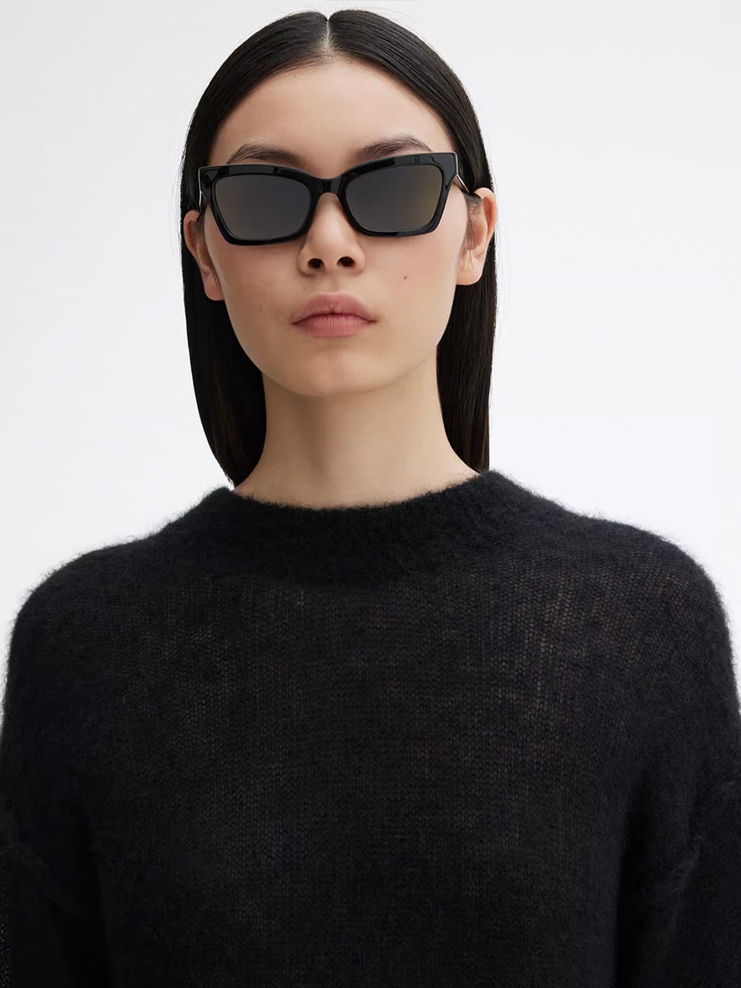 Made from lush and lofty brushed alpaca yarn, this long-sleeved knit is a lightweight crewneck sweater featuring an eased body and extended sleeves. Dropped shoulders and inverted seams.
