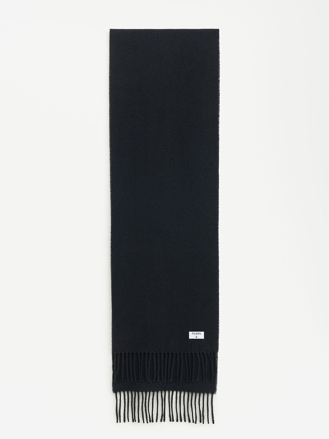 Recycled wool and cashmere blend scarf with fringed edges. Measures 50x200 cm. Woven in Italy.