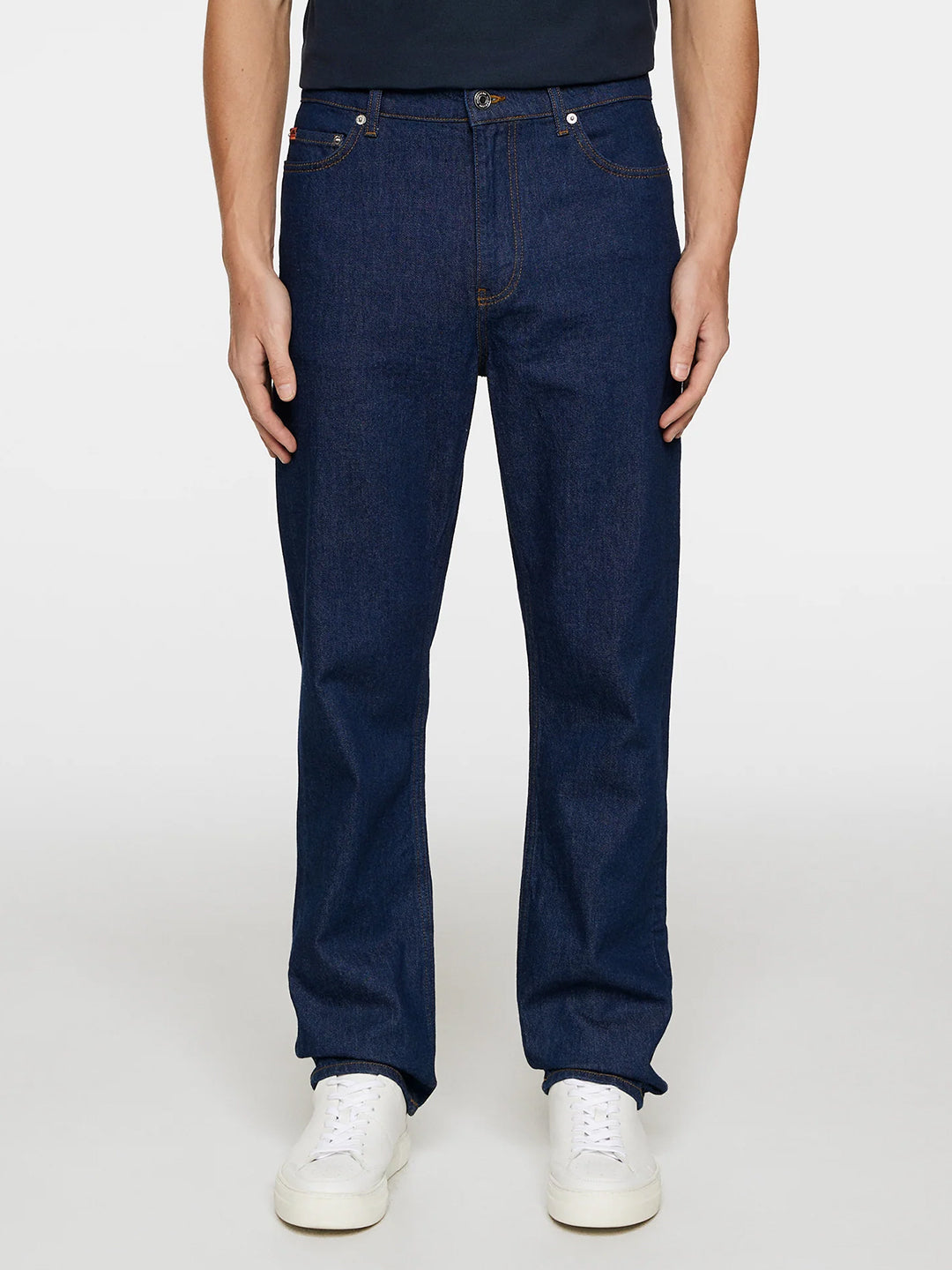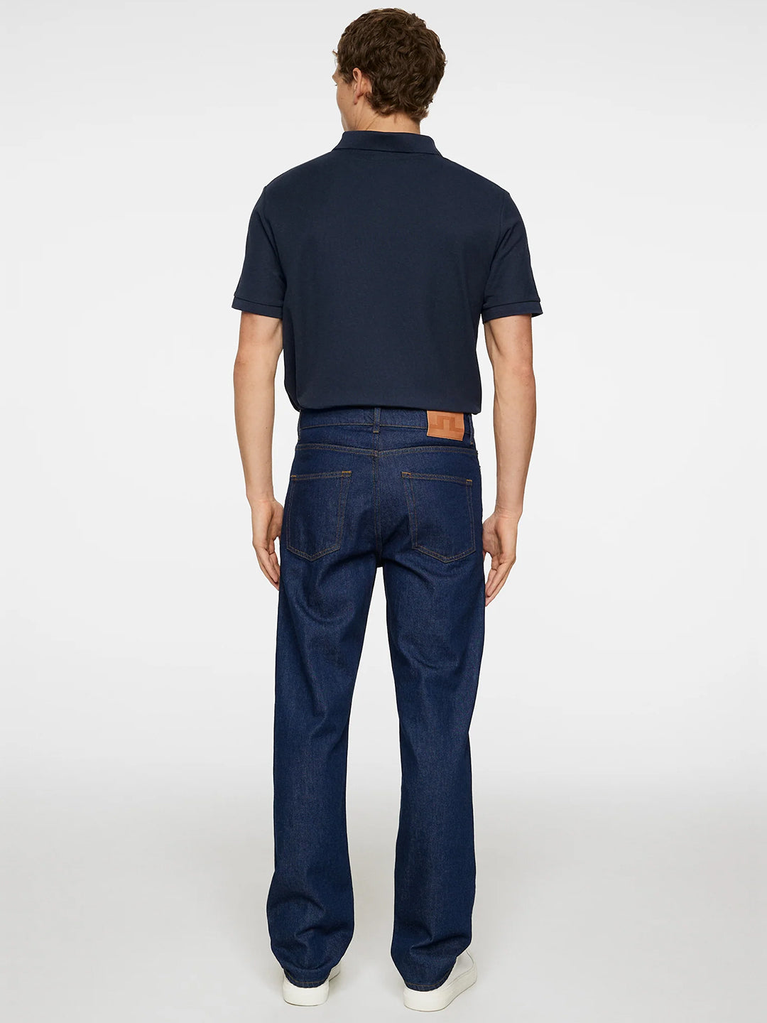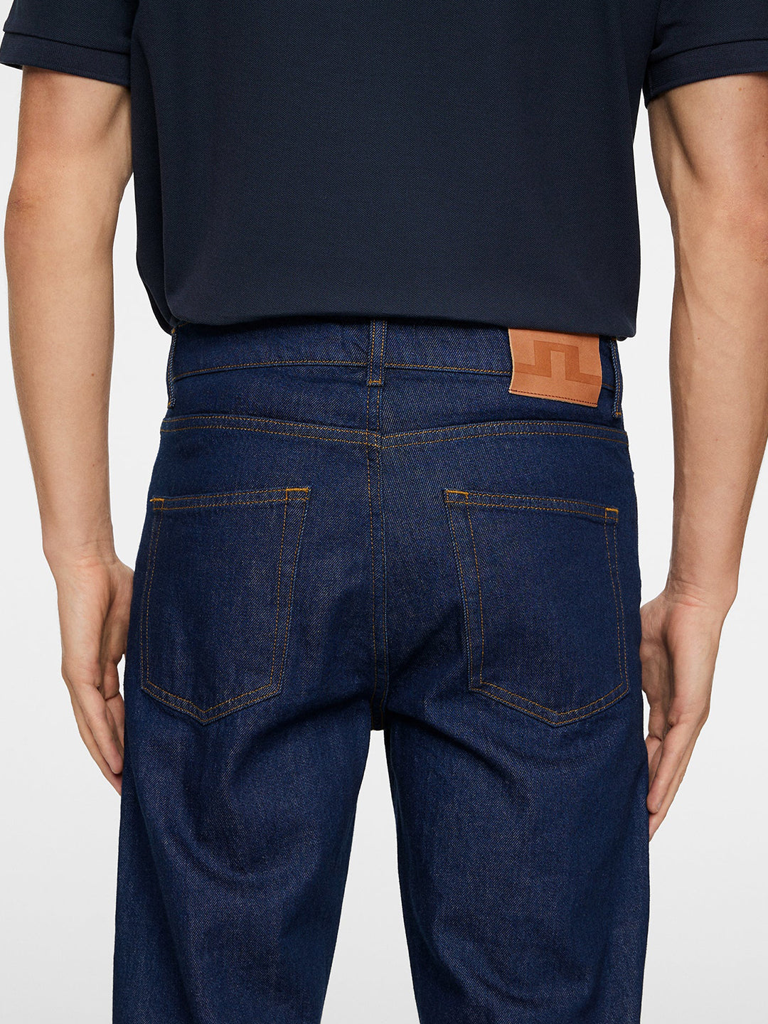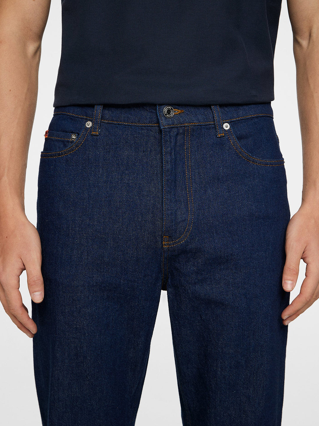 Regular-fit jeans in regenerative cotton feature a light rinse wash, zip fly, and Jacron patch.