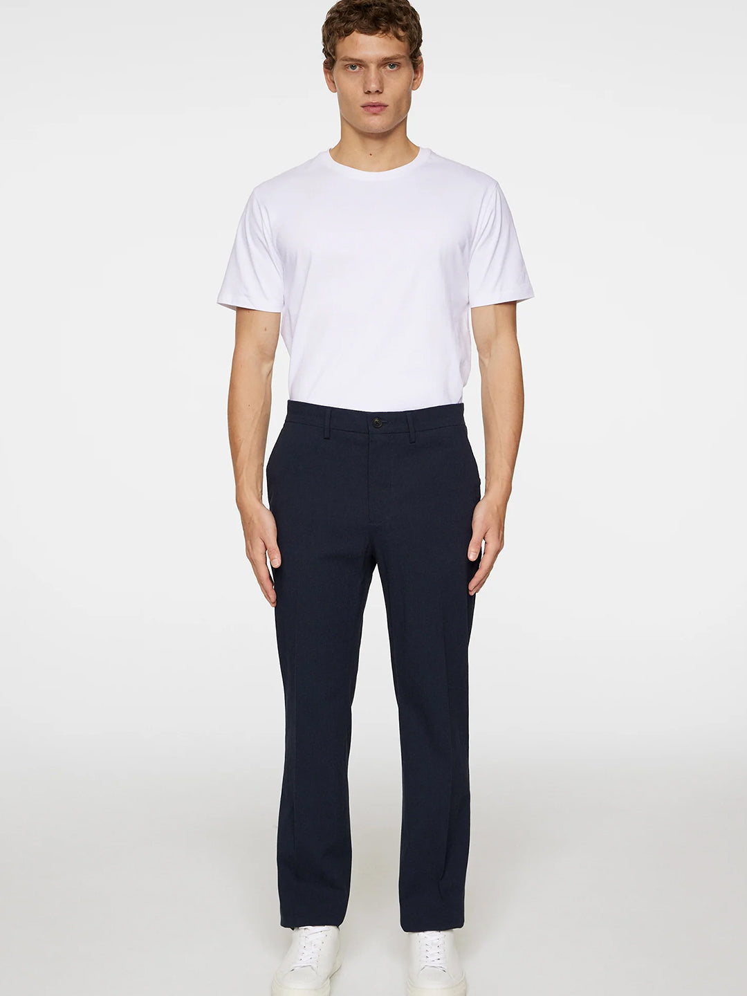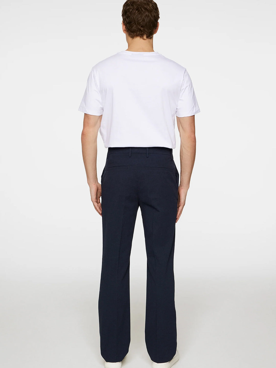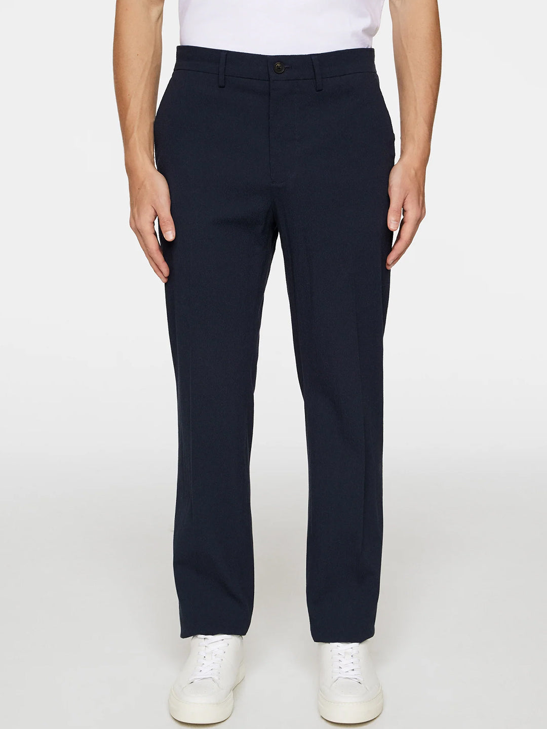These tailored seersucker Dropper Pants offer a streamlined look with creased legs, branded buttons, and an adjustable hem.
