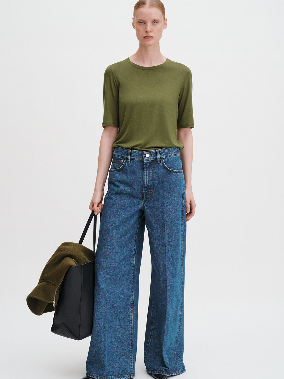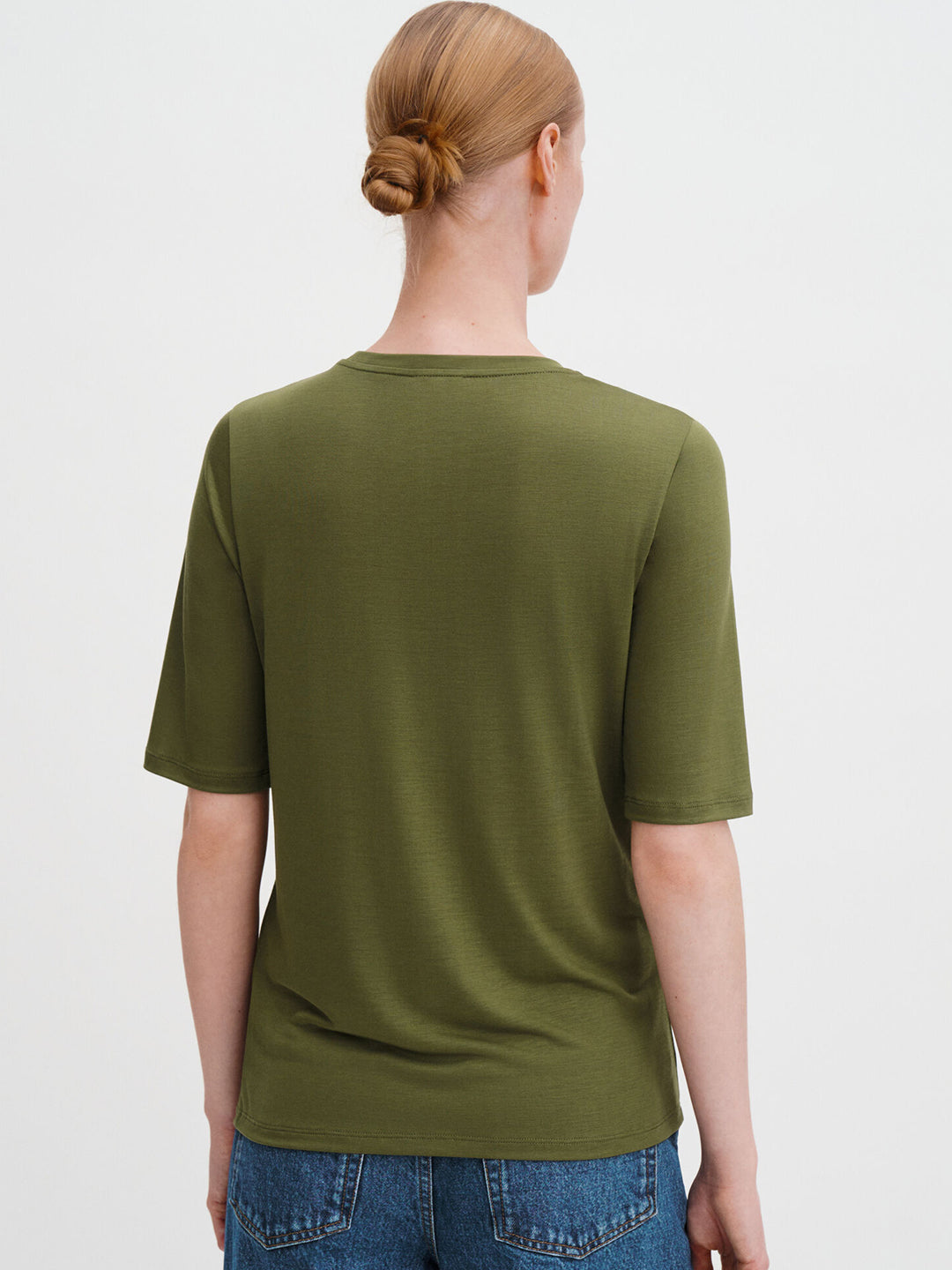 The Elena Tee is made from draped TENCEL™ lyocell. Designed with a wide neck and extended short sleeves.