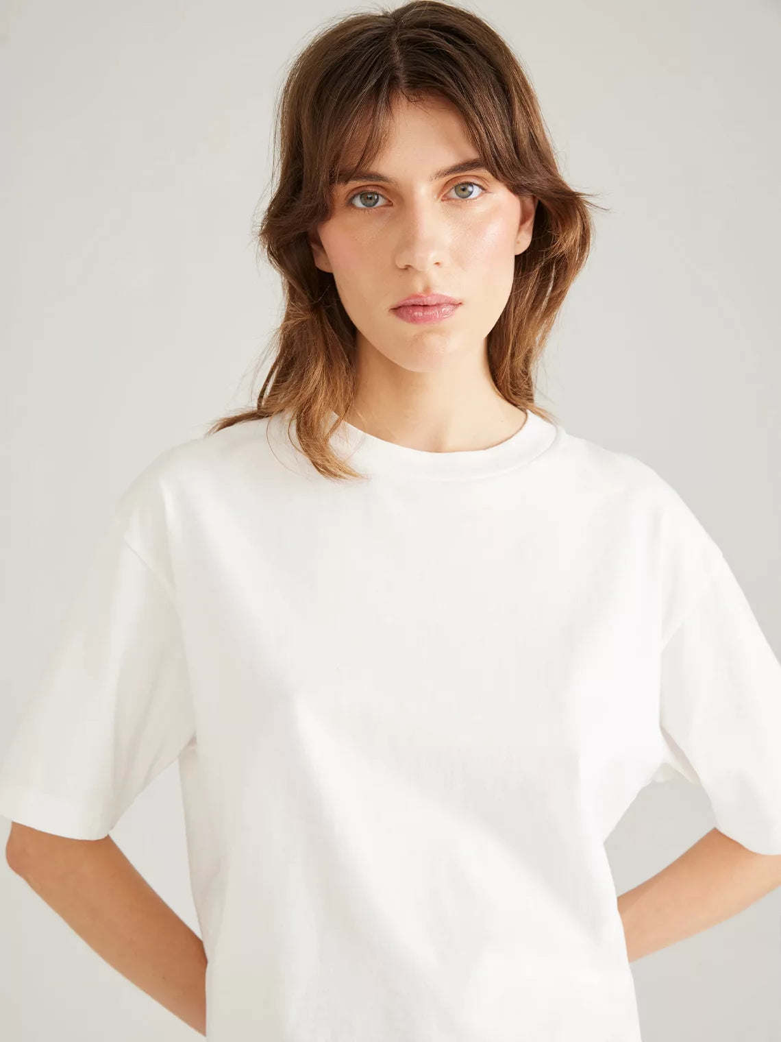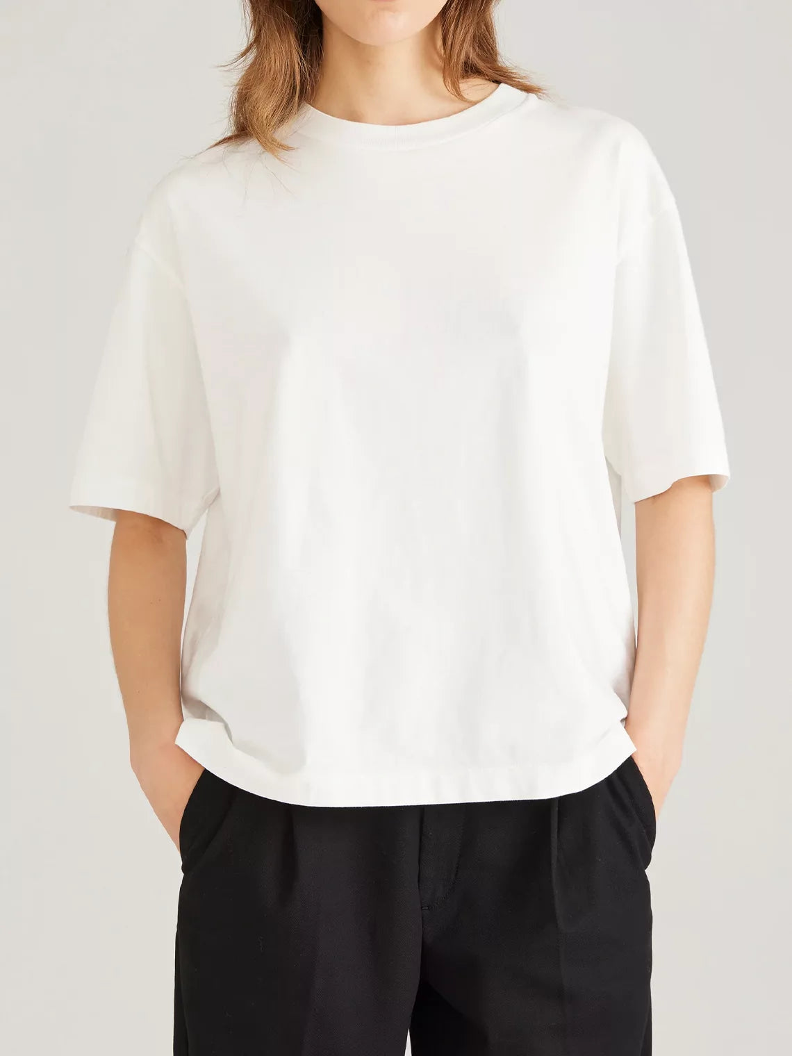 Crafted from a mid-weight organic cotton, this relaxed boxy T-shirt feature dropped shoulders and a round neckline. Details include a closed neckline and blind-stitch finishing.