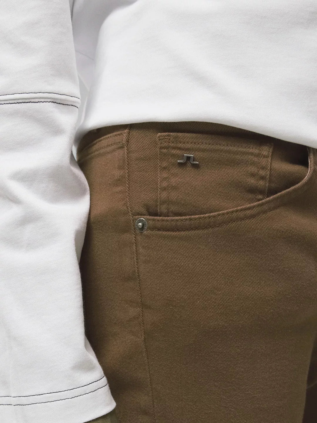 Jeans cut from premium Italian denim in a unique left-hand woven, cotton blend twill. Engineered for comfort and flexibility with a hint of stretch, these jeans are carefully garment-dyed. Lightweight jeans with a zip fly, reinforced riveted front pockets, and JL Bridge logo accents, including a logo rivet on the coin pocket and a JL brand patch at the back.
