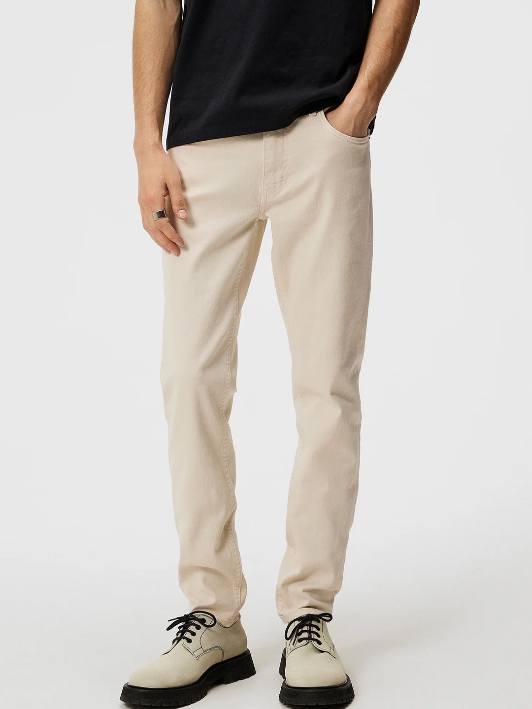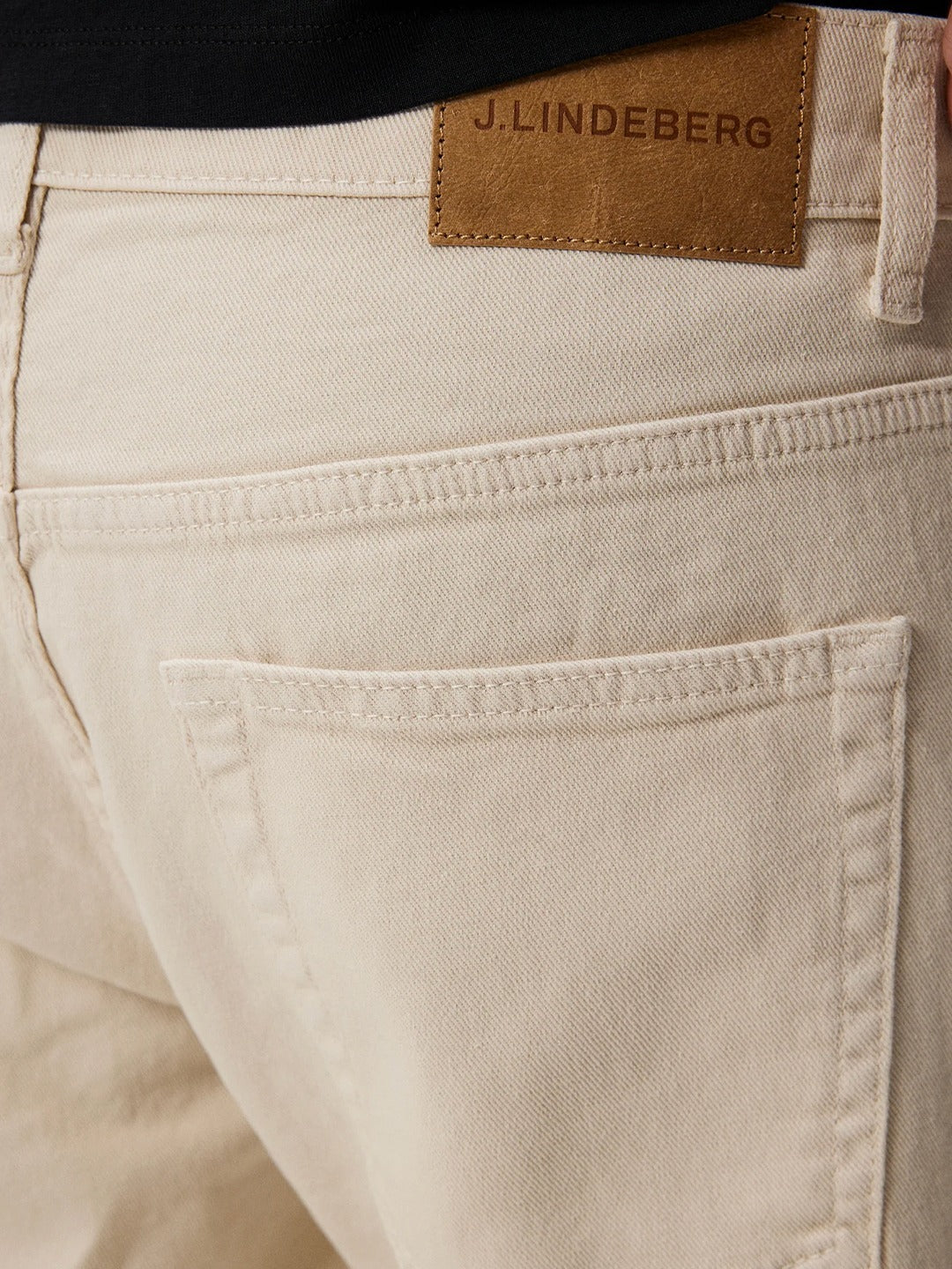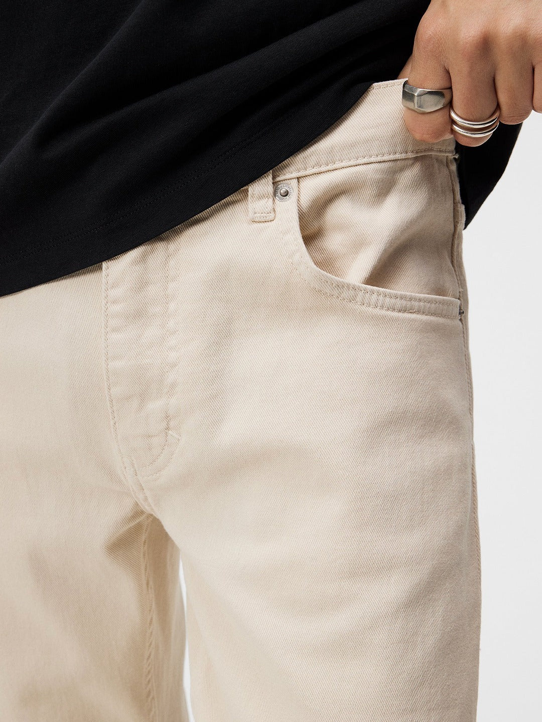Jeans cut from premium Italian denim in a unique left-hand woven, cotton blend twill. Engineered for comfort and flexibility with a hint of stretch, these jeans are carefully garment-dyed. Lightweight jeans with a zip fly, reinforced riveted front pockets, and JL Bridge logo accents, including a logo rivet on the coin pocket and a JL brand patch at the back.