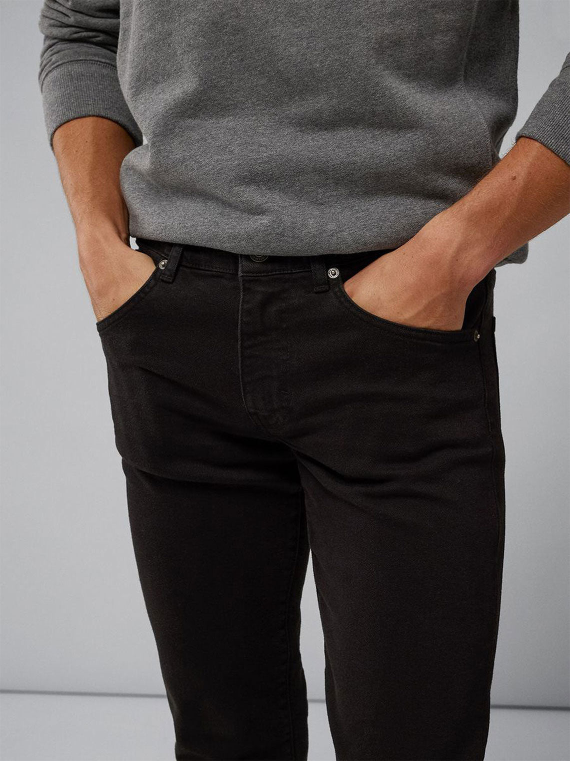 These slim-fit jeans are made in a super stretchy fabric. Matte black buttons and stay-black colorfastness.