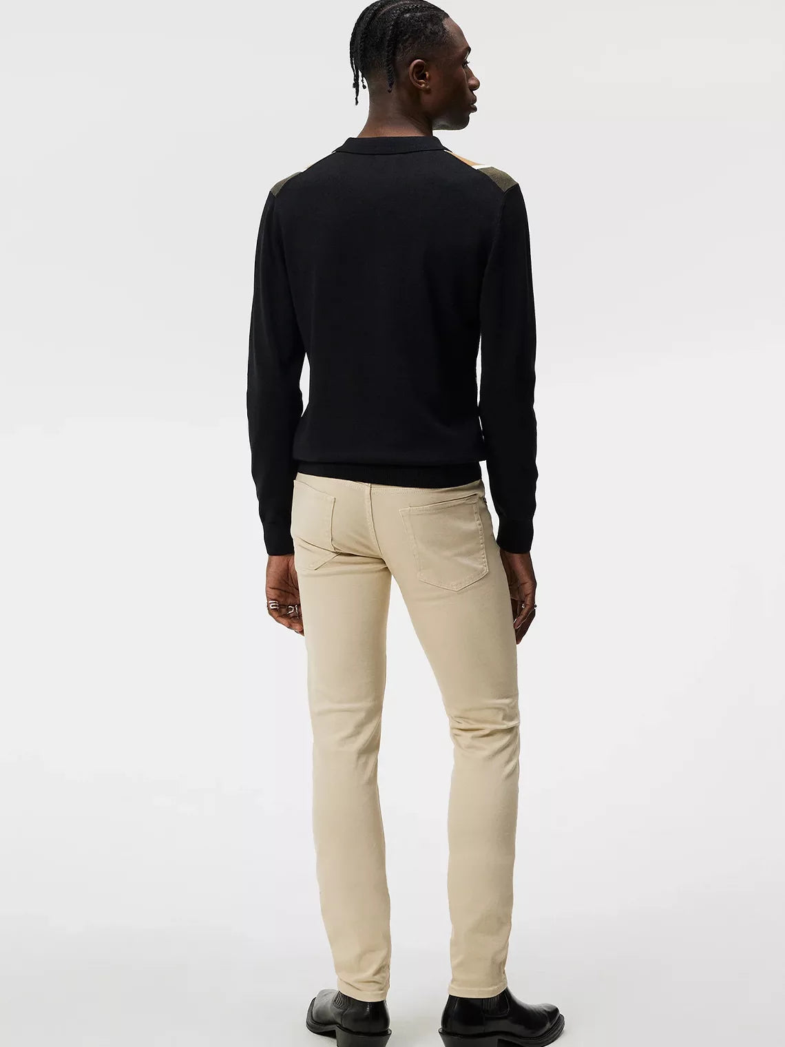 Classic slim fit jeans with mid rise. Sewn from a dyed and washed 10 oz right hand twill fabric with comfort stretch.