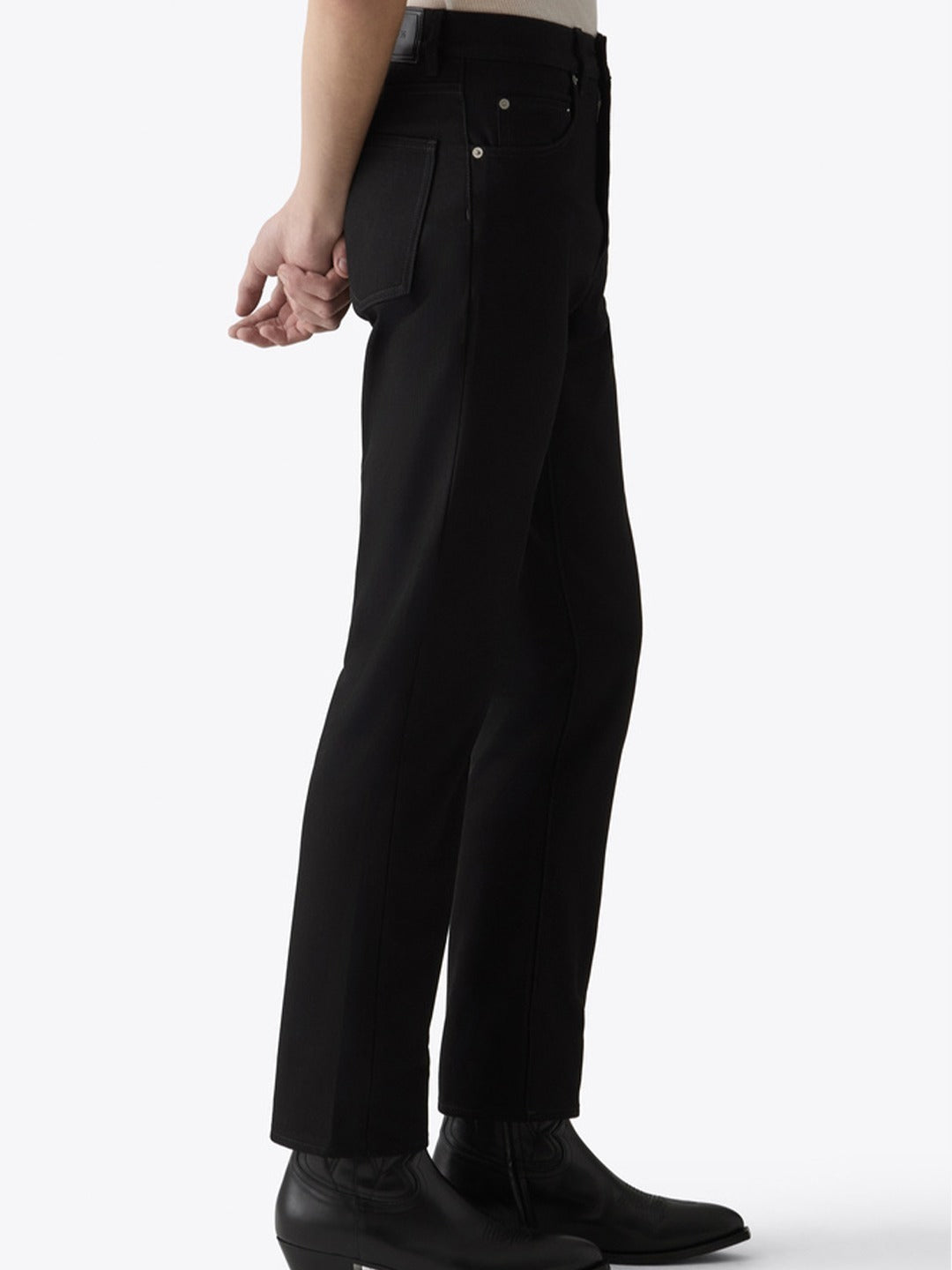 Jeans 55 is a perfectly straight leg jean, with even width throughout. The wash has the subtle lived-in look, with high and low seam effects and the authentic vintage hand feel.