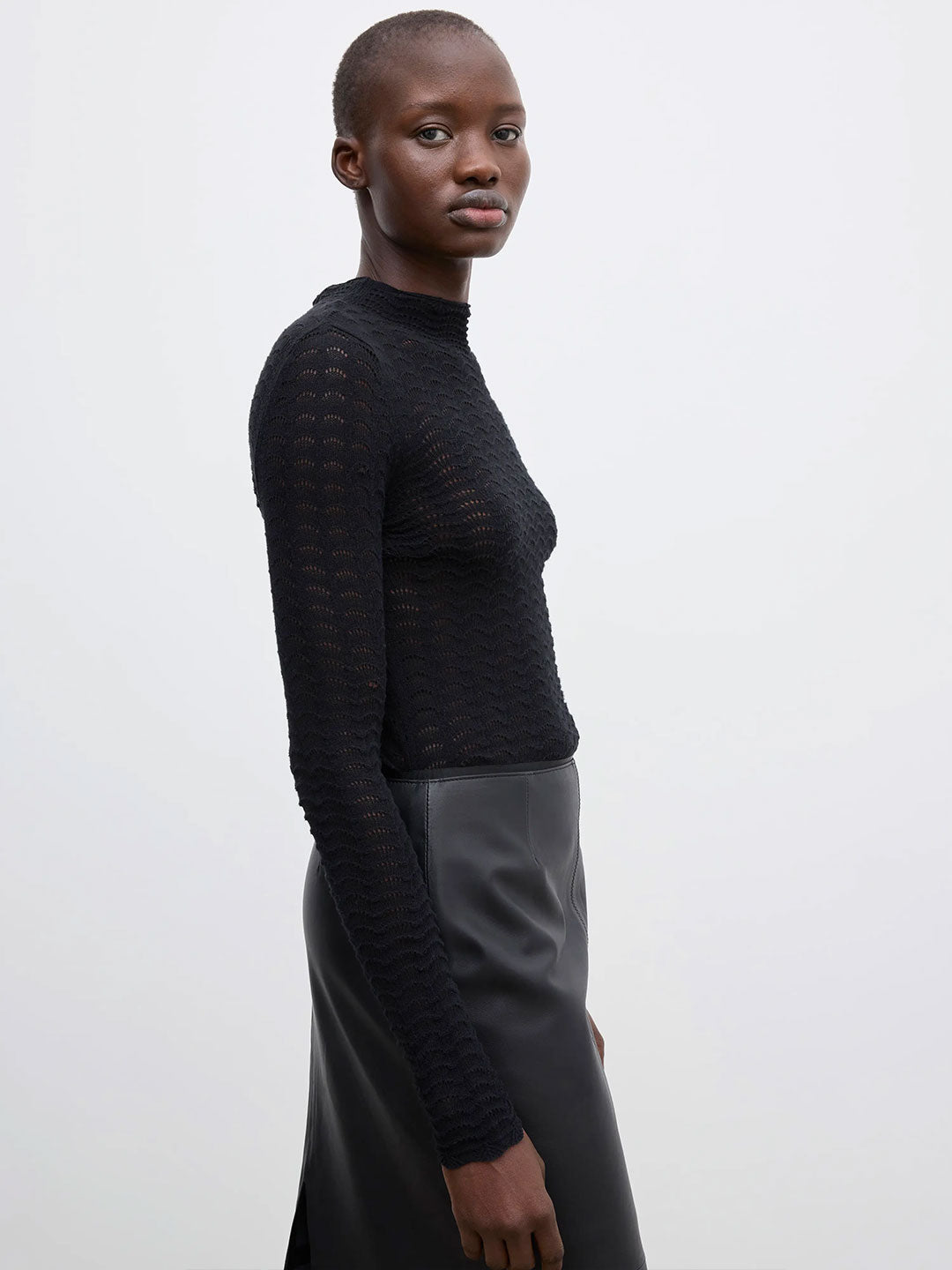 A fine-knit top in featherlight silk blend featuring a close fit, crew neck, and extended sleeves. Lace pattern by DagmarÕs in-house knitting atelier.
