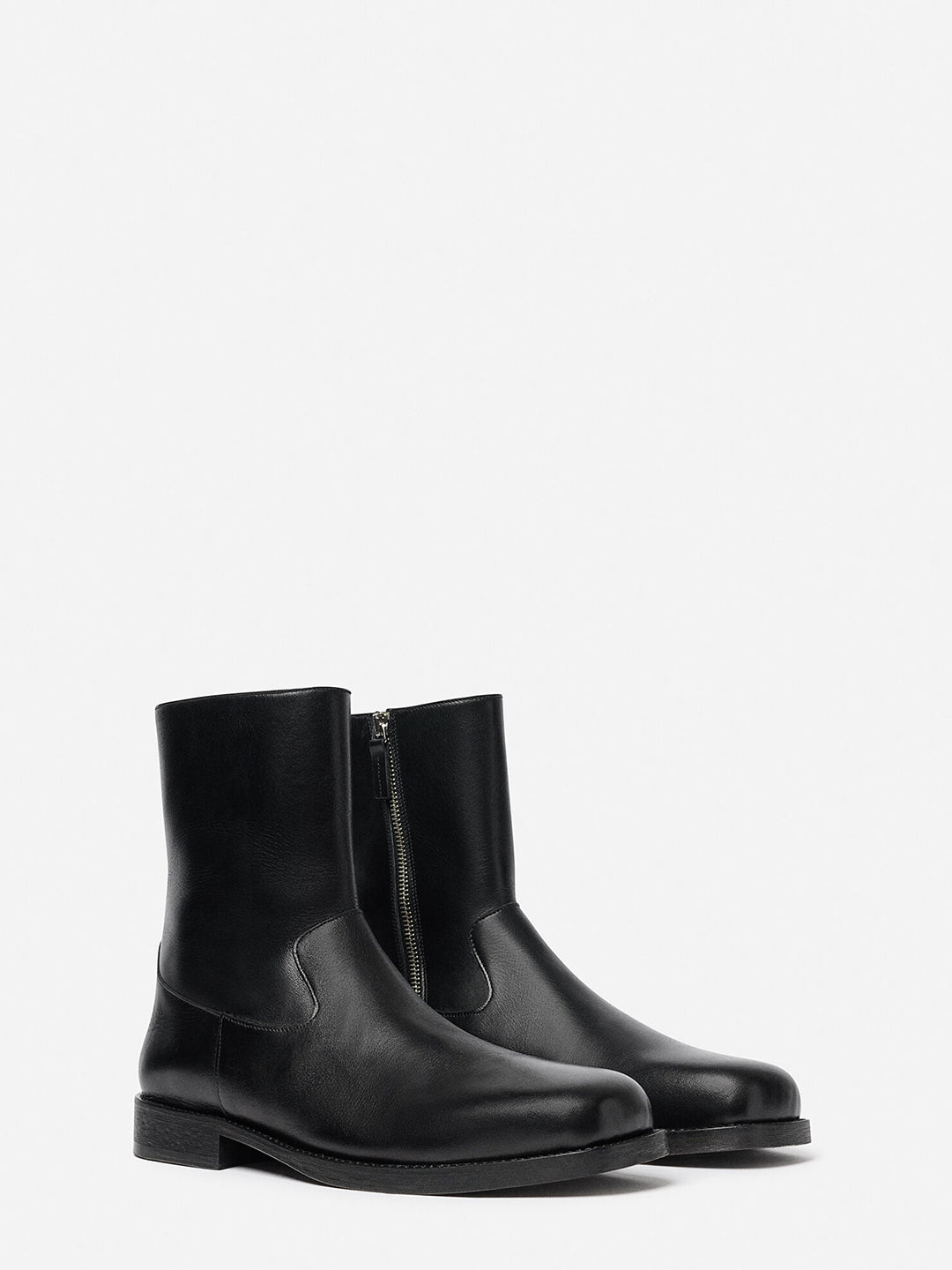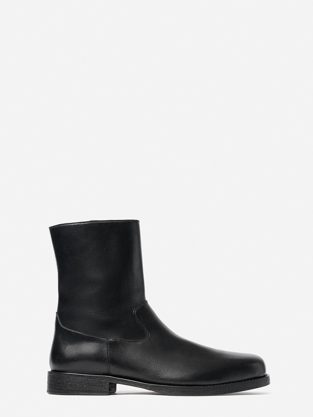 Handcrafted leather ankle boot with a vintage effect, and low block heel.
