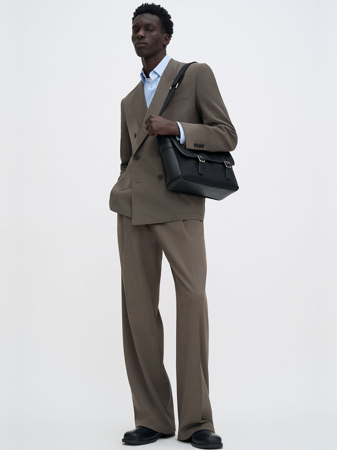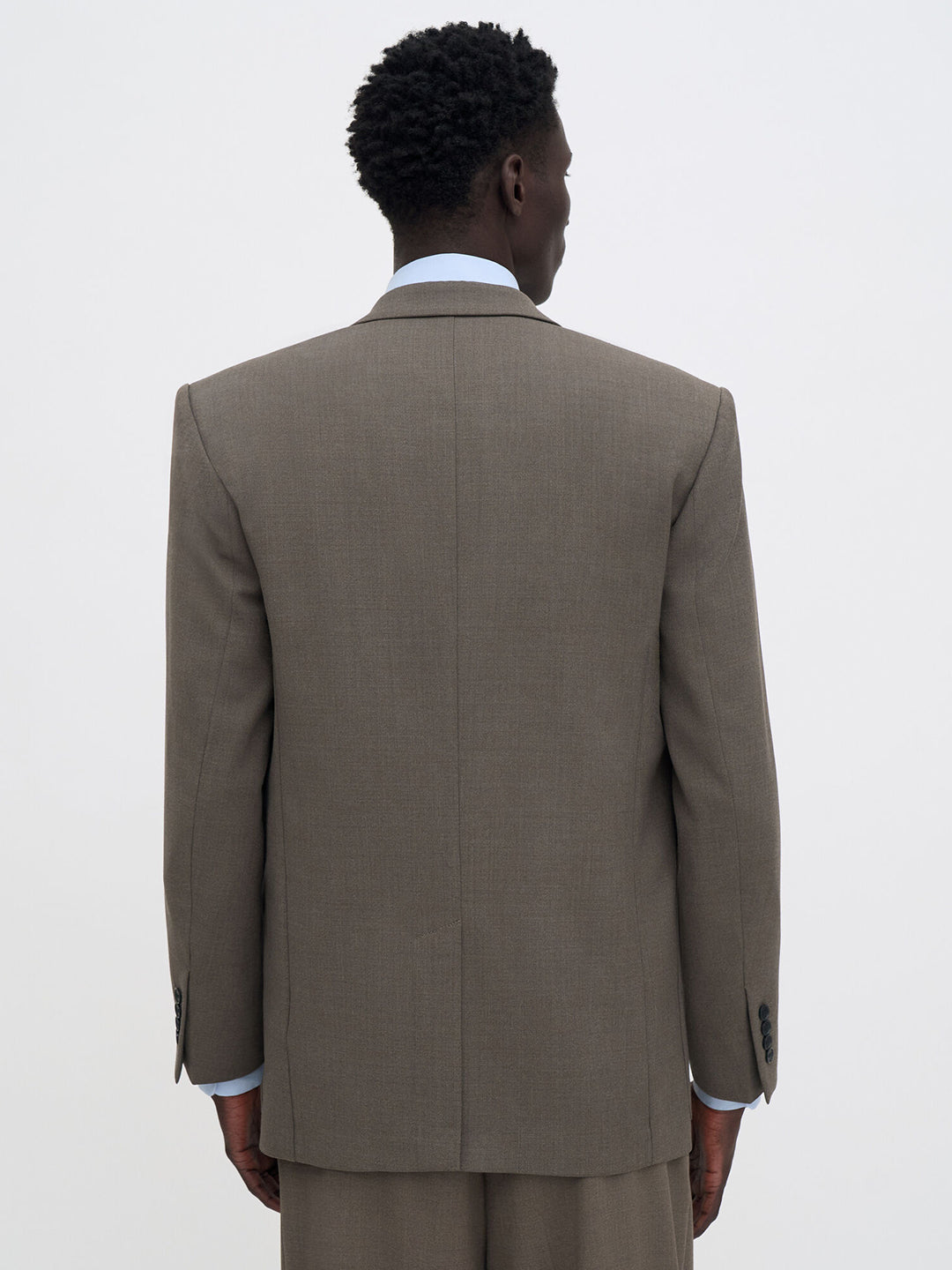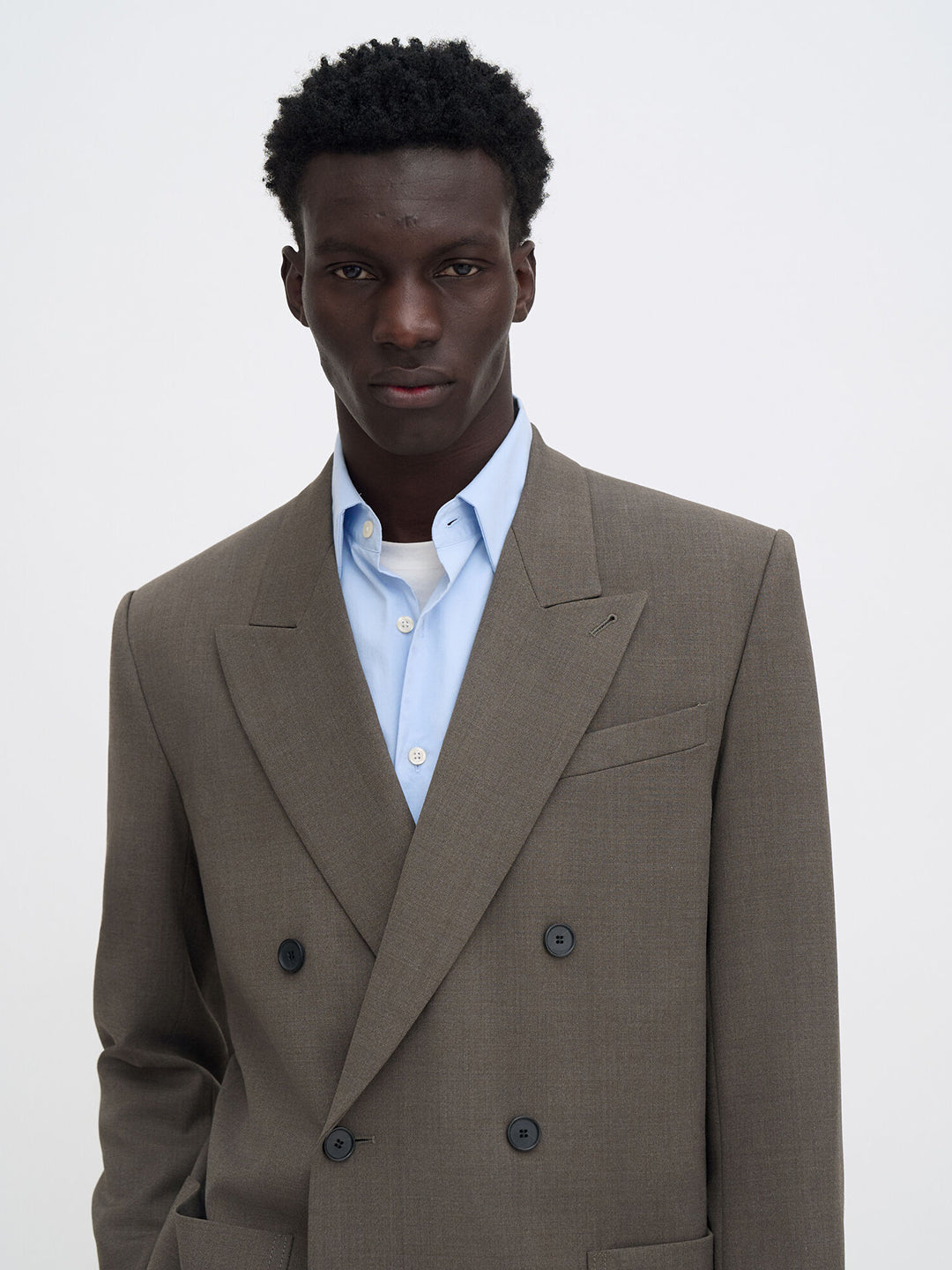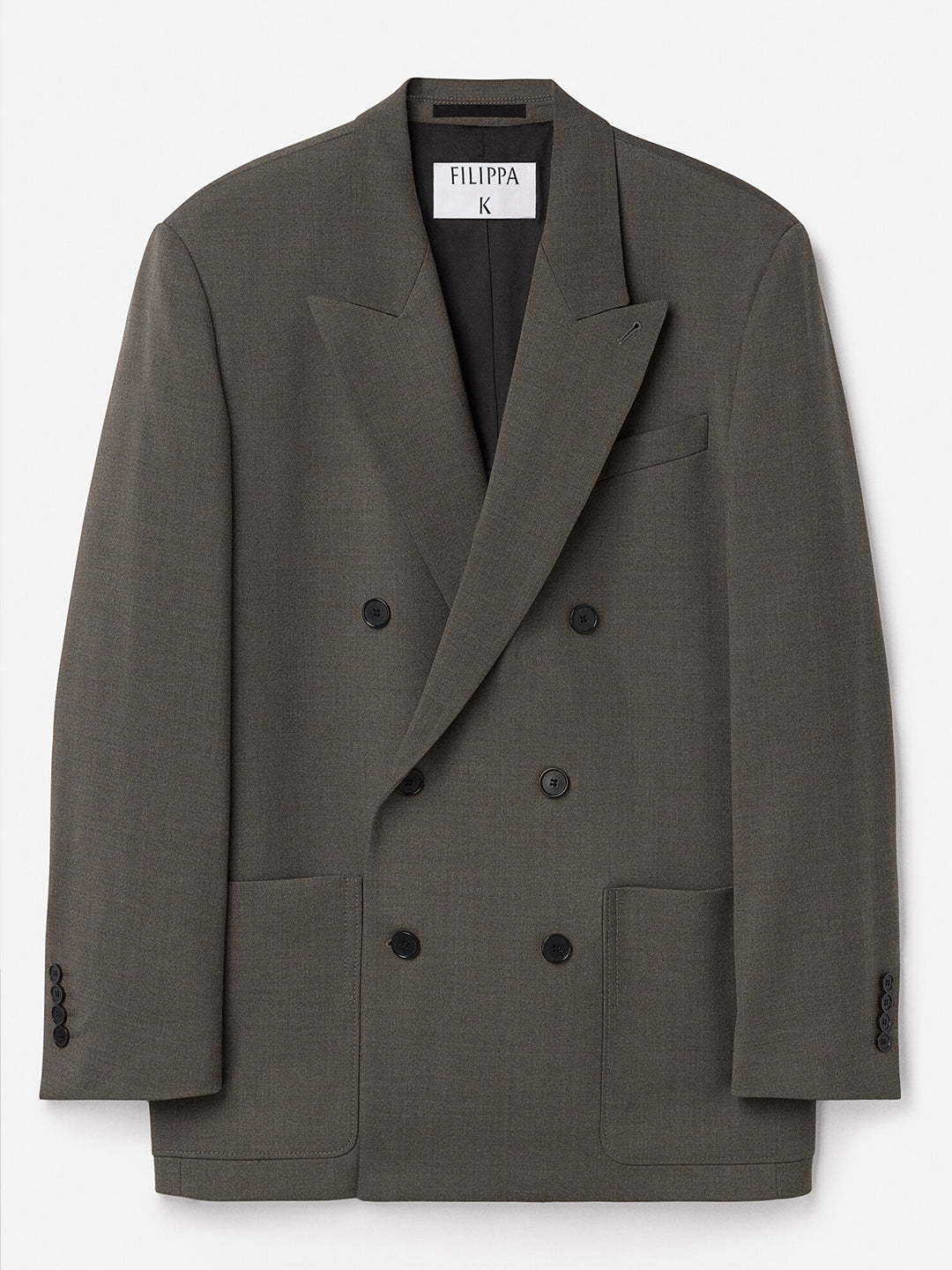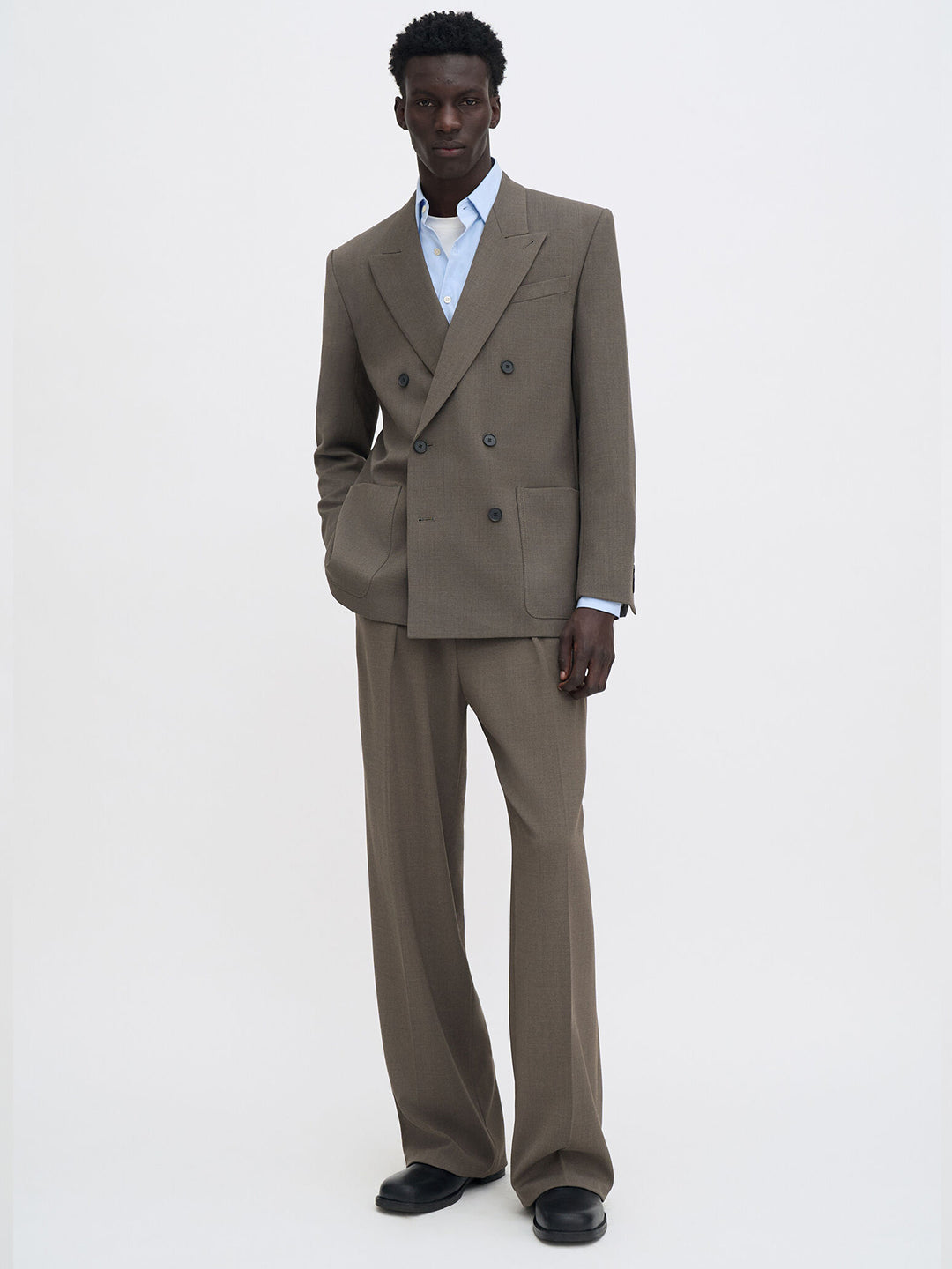 Slightly relaxed fit in a mid-weight suiting wool blend. Designed with a double-breasted closure, structured shoulders and patch pockets.