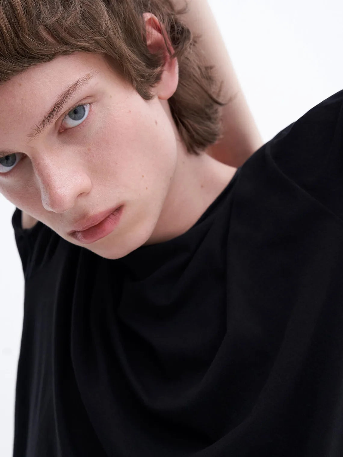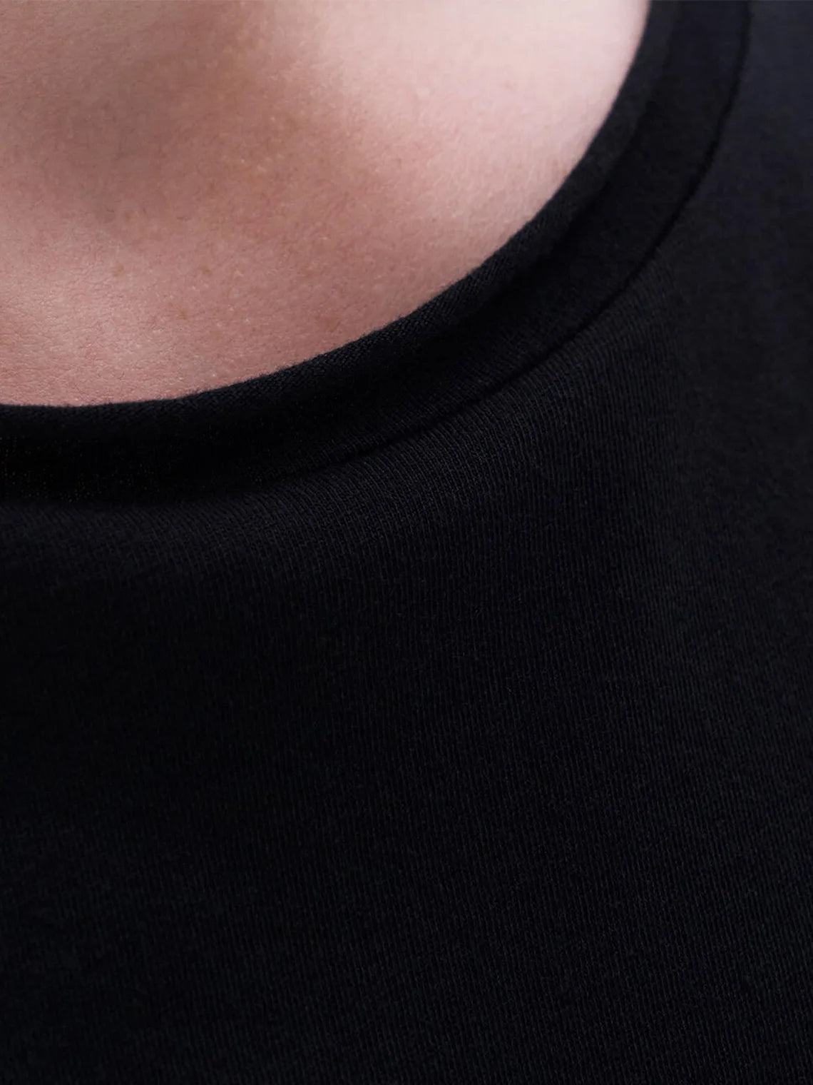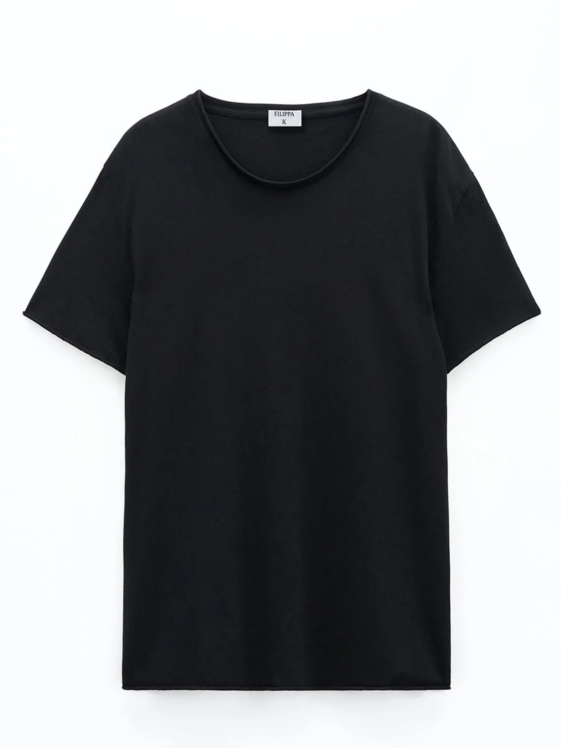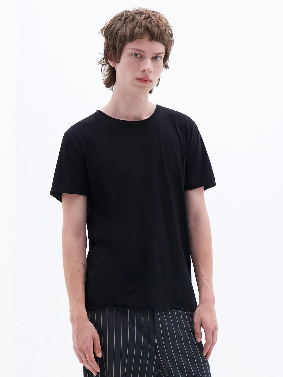 Lightweight tee in organic cotton. Rolled edges at the sleeves and neckline. Woven in Portugal.