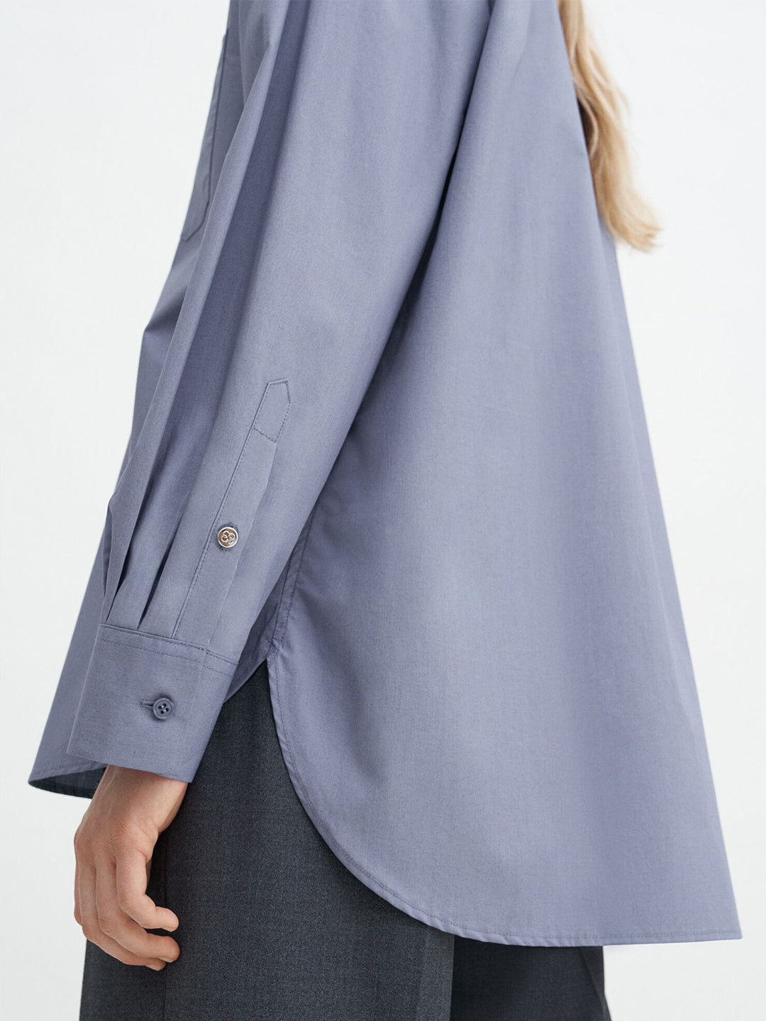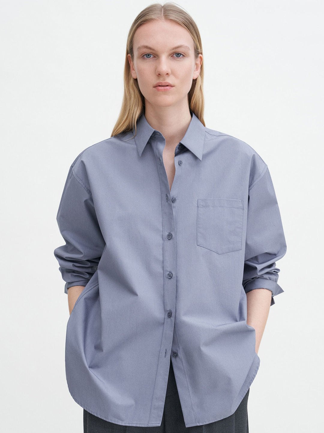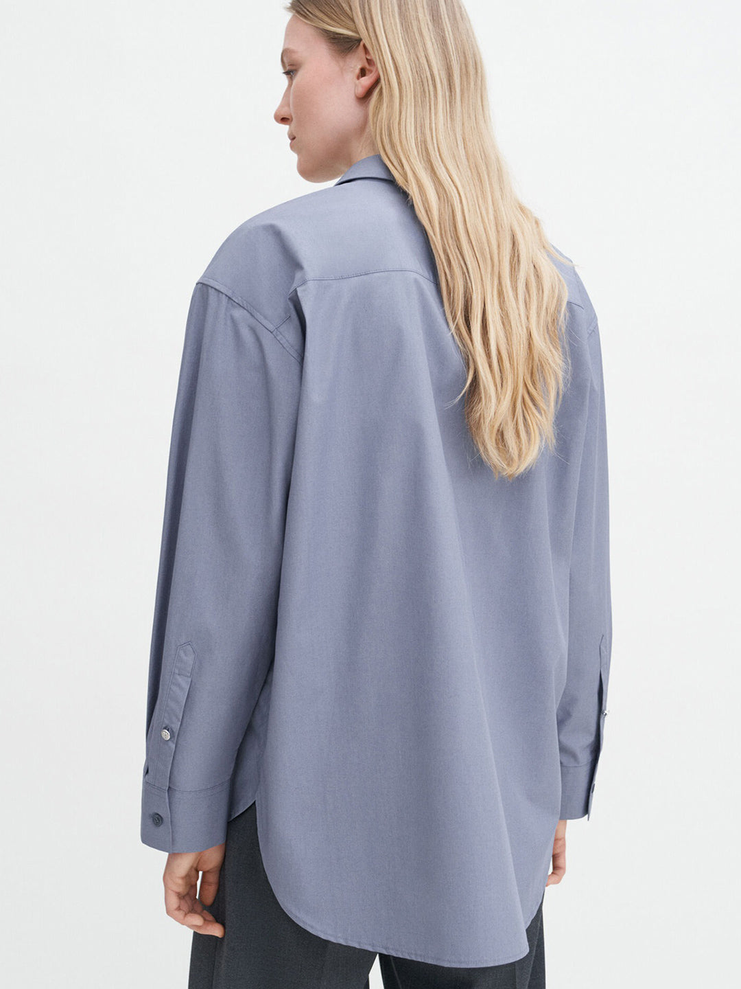 Oversized cotton shirt with a soft finish. Front buttoning. Buttoned cuffs. Single patch pocket.
