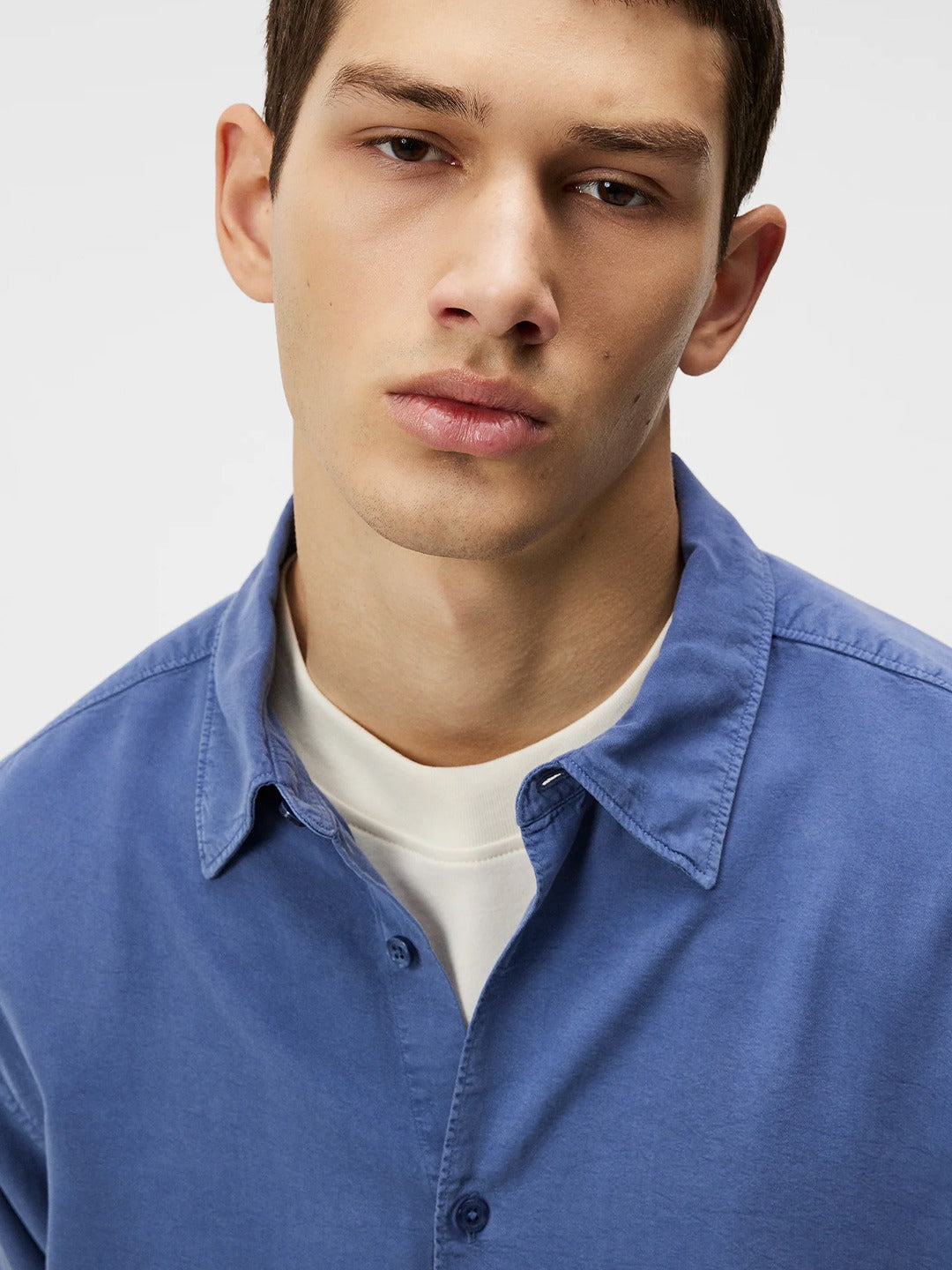 Slim Comfort Tencel Shirt cut in a slim fit with powdered mother-of-pearl buttons detailed with our logo. Finished with a classic collar and understated tonal embroidery along the front hemline.