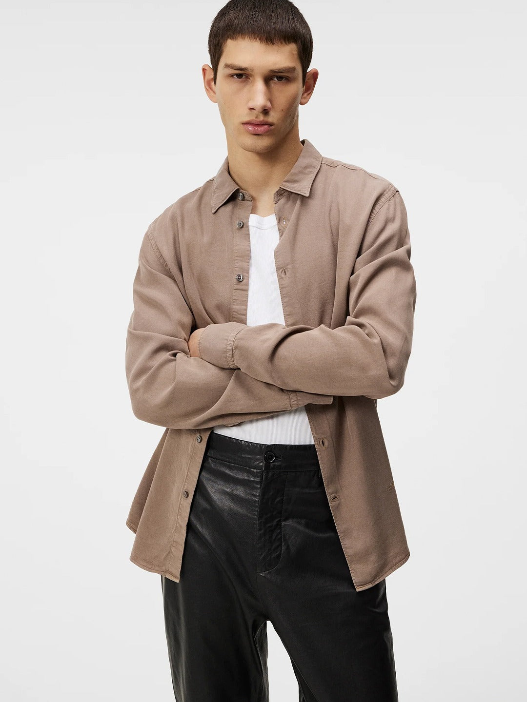 Slim Comfort Tencel Shirt cut in a slim fit with powdered mother-of-pearl buttons detailed with our logo. Finished with a classic collar and understated tonal embroidery along the front hemline.