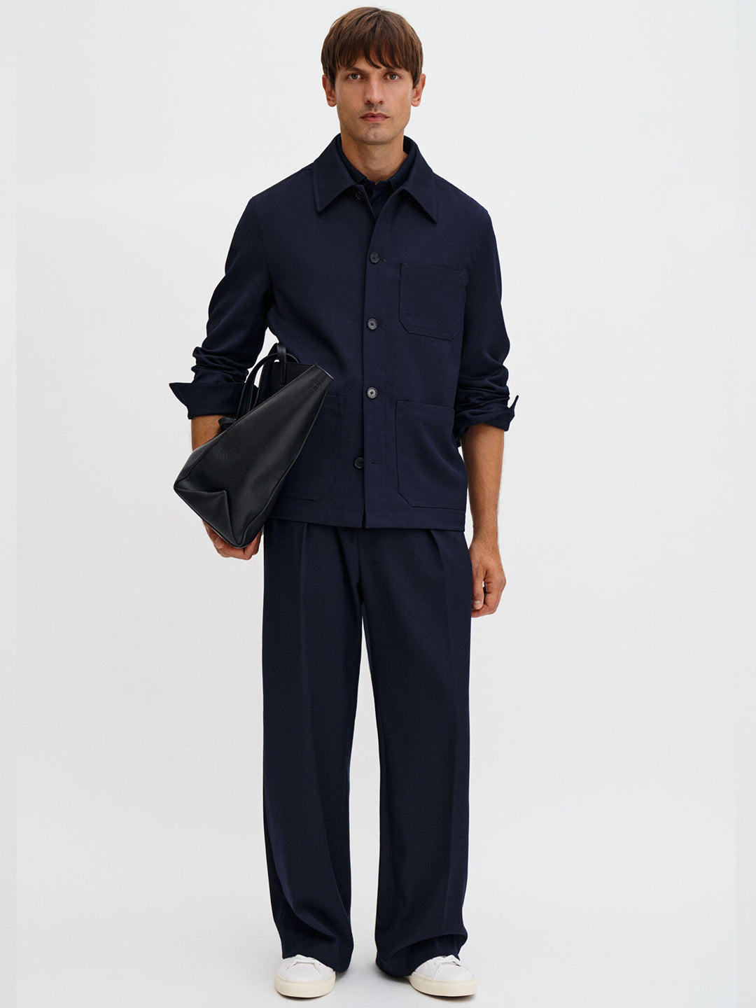 Overshirt-style jacket with a regular, slightly boxy fit in stretch cavalry twill with workwear-inspired details.