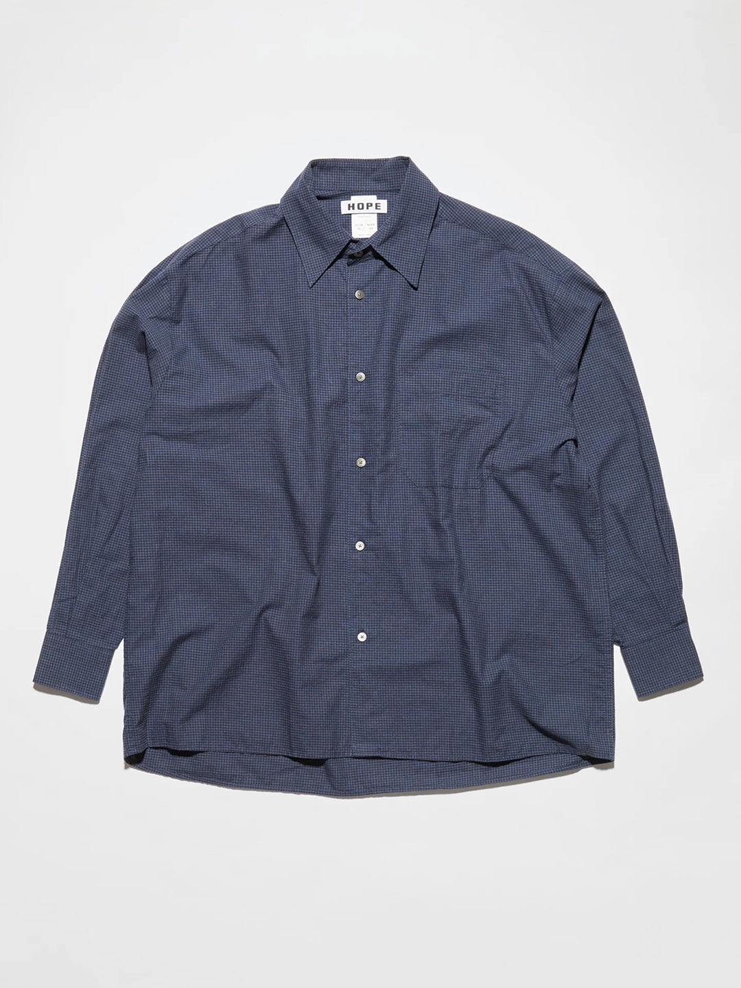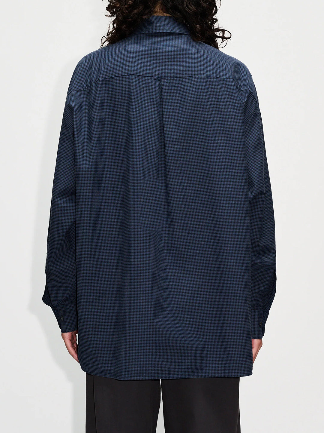 Toxic Shirt is a boxy, loose-fit shirt made from cotton with a micro check pattern. Details include a pleat at the center back and a straight bottom hem.